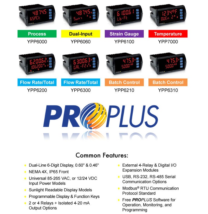 Yokogawa Corporation of America is pleased to announce the release of the ProPlus Digital Panel Meter series which was designed according to Yokogawa’s well known and rigorous engineering and high quality standards. The ProPlus Digital Panel Meter series is available in the following 8 different models with up to 24 feature enhancing options.