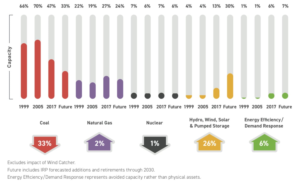 On Tuesday, the company said that it has “factored future carbon regulations into the company’s evaluation of generation resource options for many years and will continue to do so.” It explained that though federal efforts to repeal the Clean Power Plan create uncertainty for near-term regulatory action on climate change, “some form of carbon regulations” is “likely” in the future. “Today, we are taking a longer-term view of carbon by setting new goals for carbon dioxide emission reductions for the future based upon resource plans that account for economics, customer preferences, reliability and regulations,” it said.