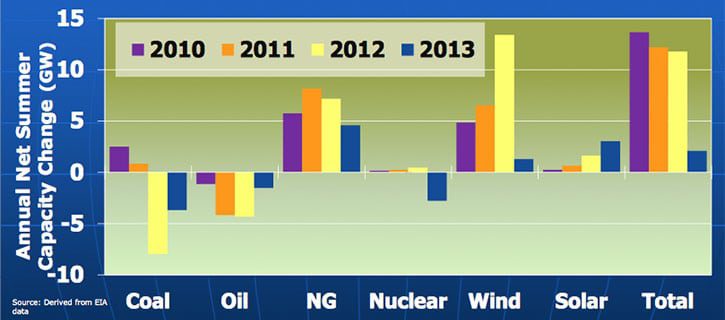 The reasons for this are well-known, the State of the Markets Report says: new gas generation is cheaper to build, has shorter construction times, and offers more flexible operations with fewer environmental restrictions. However, coal plant construction "has not come to a halt," notes the report. "Coal still maintains a fuel-cost advantage for large base-load plants in certain locations, particularly where delivered coal costs are low."