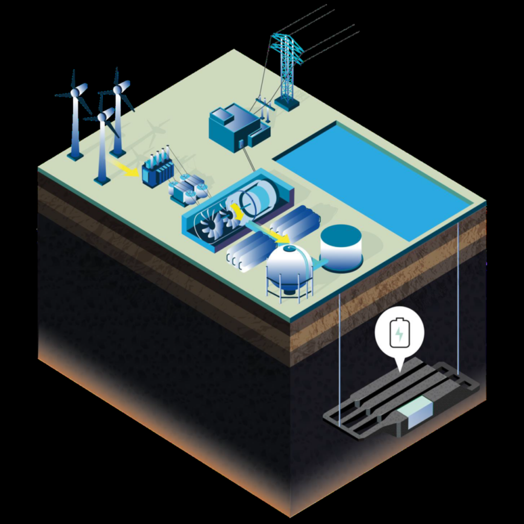 - Corre Energy and Contour Energy are combining hydrogen and CAES technologies at facilities built in large underground salt caverns in west Texas. This 280-MW project awaits final investment decision (FID).