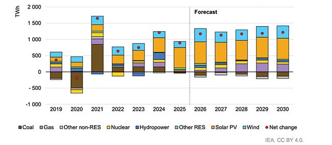 According to the International Gas Union (IGU), gas-fired generation for data centers could expand by approximately 30 billion cubic meters by 2030 and nearly double again by 2035. The International Energy Agency (IEA), meanwhile, projects that gas-fired generation could grow at 2.6% annually through 2030—the only fossil fuel that is expected to soar in its outlook—as one of the only viable firm, flexible resources that is already balancing grids that are increasingly dependent on variable renewables (Figure 1).