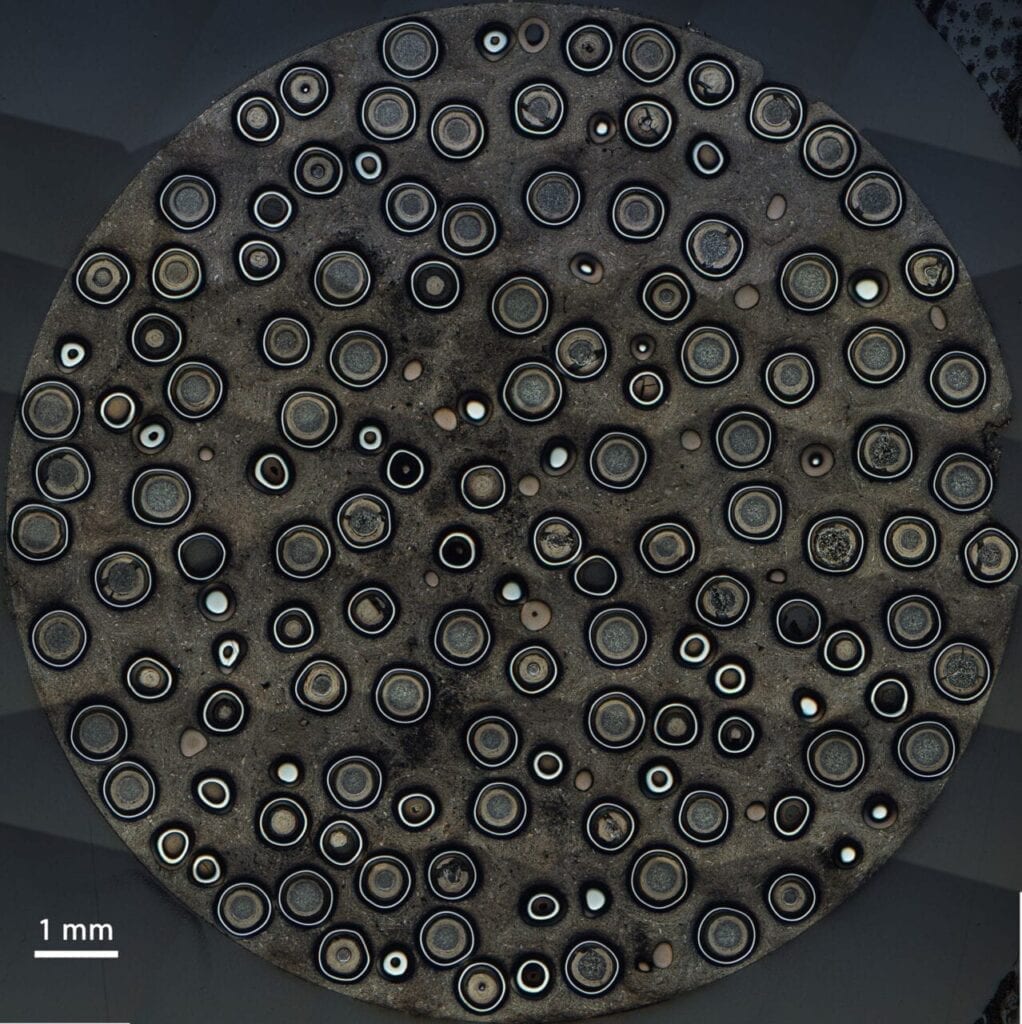 The 18-foot-long AGR-1 experiment was inserted in INL’s ATR core, which lets researchers separately monitor and control each of six capsules containing the particle fuel specimens. Inside the ATR core, the fuel samples were subjected to neutron irradiation many times higher than what they would experience inside a high-temperature gas reactor or a current light water reactor. These conditions reduced the amount of time researchers needed to get data about how irradiation affected the performance of fuel and materials.