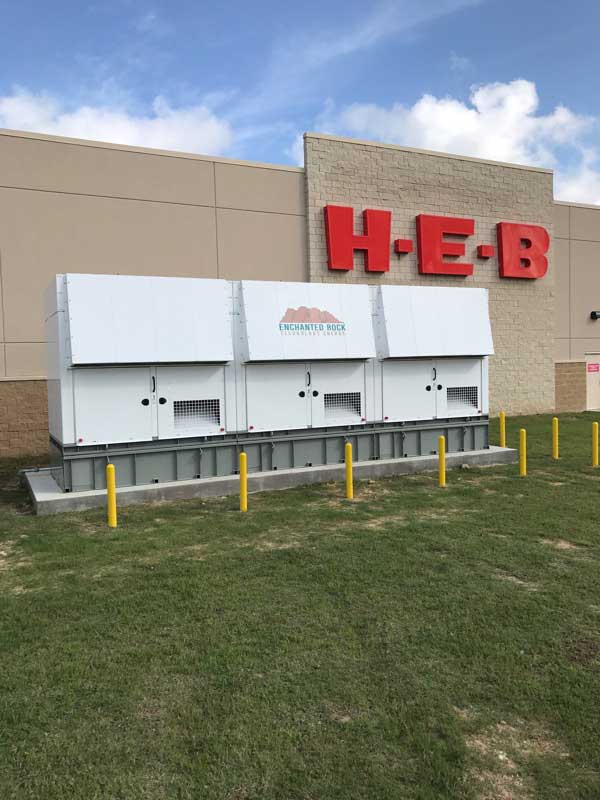 McAndrew said his company manages about 60 MW of diesel-based systems in Texas in a partnership with Houston-based NRG Energy, along with 167 MW of such projects financed independently by Enchanted Rock. McAndrew said the system installed at H-E-B, along with similar systems at other locations in the region, including the Buc-ee’s convenience store and truck stop chain, is the first in which natural gas is the prime fuel.