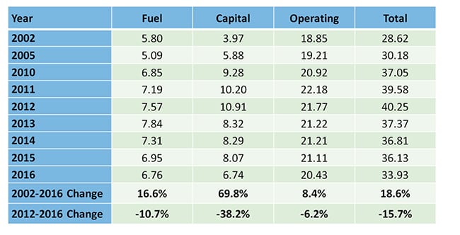 Meanwhile, the generation-weighted price of all coal and lignite units in ERCOT during 2016 was $23.98 per MWh. Potomac’s 2016 market survey report notes that, although specific unit costs may vary, index prices for Powder River Basin coal delivered to ERCOT were approximately $2.50/MMBtu in 2016, a decrease from approximately $2.60 per MMBtu in 2015. For the past two years, costs for delivered costs in ERCOT has still been about $0.03 to $0.05/MMBtu higher than natural gas prices at the Houston Ship Channel, it said.