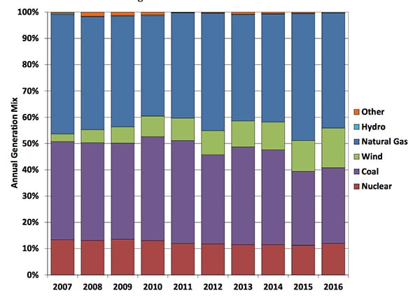 - ERCOT’s annual generation mix. Courtesy: Potomac Economics