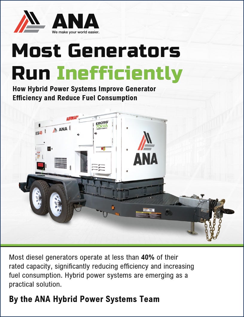 Most diesel generators operate at less than 40% of their rated capacity, significantly reducing efficiency and increasing fuel consumption. Hybrid power systems are emerging as a practical solution. In this White Paper, the ANA Hybrid Power Systems Team discuss the problems of traditional diesel generators, and how the EBOSS® Hybrid Energy System is changing how we think of power generation.